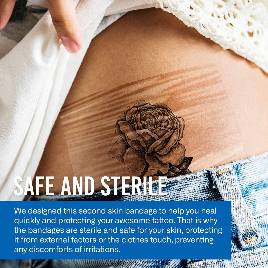 Saniderm Second Skin Bandage. You usually do this in the shower bathroom please make sure you have clean hands. It is a layer of flexible adhesive plastic that covers a fresh tattoo like a second layer of skin.